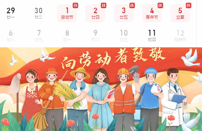 2024年5月1日至2024年5月5日,共放假5天,2024年5月6日,正常上班。